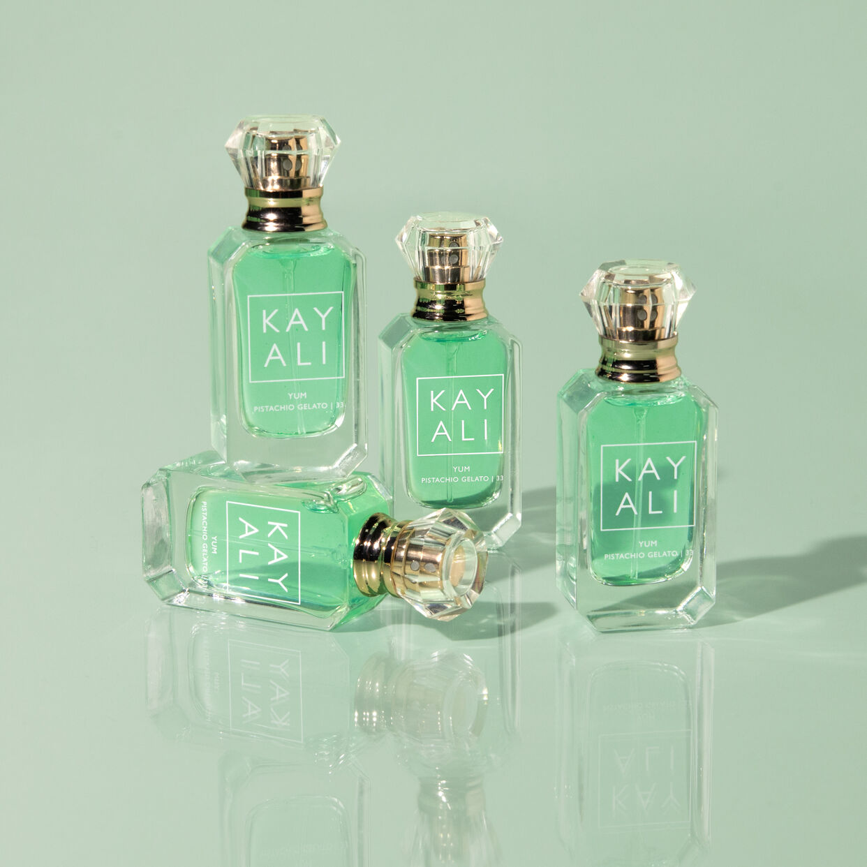 Yum Pistachio Gelato | 33 Eau de Parfum Intense is a delicious explosion of irresistible and edible notes including pistachio, voluptuous whipped cream, roasted hazelnut, sweet rum, fluffy marshmallow, and fizzy cotton candy. A truly yummy fragrance that charms with an unforgettably intense, gourmand scent trail that will have you smelling good enough to eat.